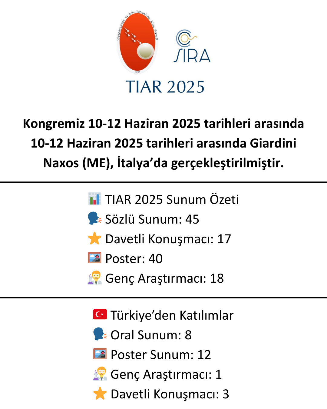 15 Haziran 2025: 2. Uluslararası Türk-İtalyan Veteriner Reprodüksiyon Kongresi (TIAR 2025), 10-12 Haziran 2025 tarihinde Giardini Naxos (ME), İtalya’da gerçekleştirilmiştir. Detaylar için tıklayın.